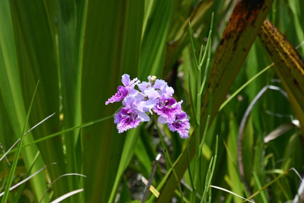 Setelah satu jam lamanya berpatroli kami pun sejenak beristirahat sementara juragan klotok (driver) membersihkan baling-baling dari daun bakung dan rerumputan. Kami pun menikmati pemandangan alam yang didominasi warna hijau pepohonan dan tumbuhan lainnya yang menyejukan dan menenangkan. Keheningan alam yang menhanyutkan kami dalam kantuk buyar seketika oleh suara juragan klotok yang berteriak. Sambil menunjukkan jarinya berkata : “Lihat ada bunga yang cantik”, kami pun serentak memandang ke arah lokasi yang ditunjukkan. Berjarak sekitar 70 meter terlihat warna kontras dari warna sekitarnya. Warna ungu dan putih tampak terlihat dari beberapa kuntum bunga yang mekar. Tanpa dikomando klotok kami dikayuh menuju lokasi tersebut. “Anggrek vanda pensil” langsung terucap seketika saat tiba di lokasi sang anggrek. Terpukau oleh keindahan bunga anggrek ini sampai sekarang menjadi pengalaman yang berkesan yang tak terlupakan.