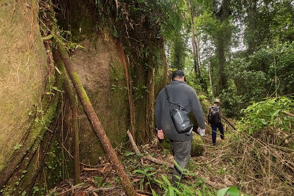 Mendekati bukit kami menjumpai hamparan tumbuhan yang didominasi bambu kecil disekitarnya tumbuh pohon menjulang khas dipterocarpacea seperti jenis meranti dan keruing, perlahan lelah dan penat perjalanan mulai terlupakan dan langkah kaki kami sudah mantap karena tidak lagi berendam atau kejeblos di rawa-rawa.
